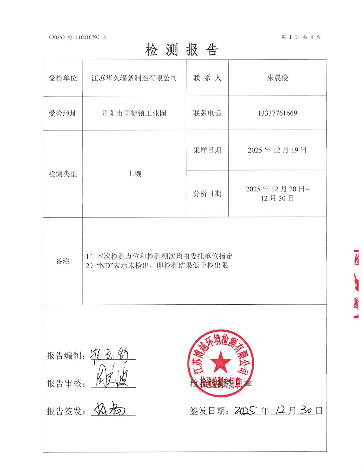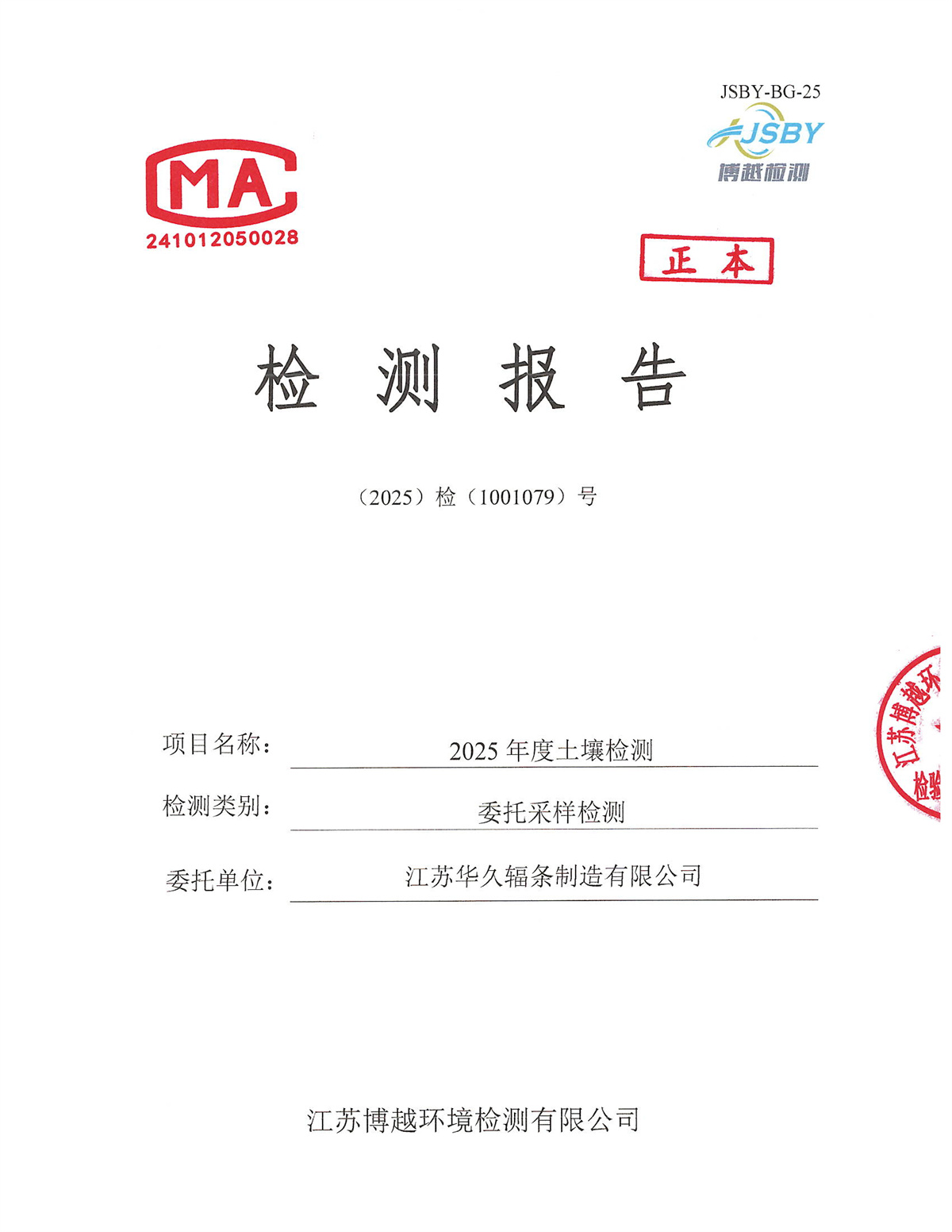 江苏华久辐条制造有限公司2025年度土壤检测