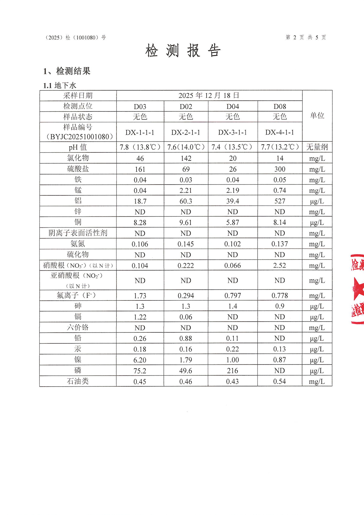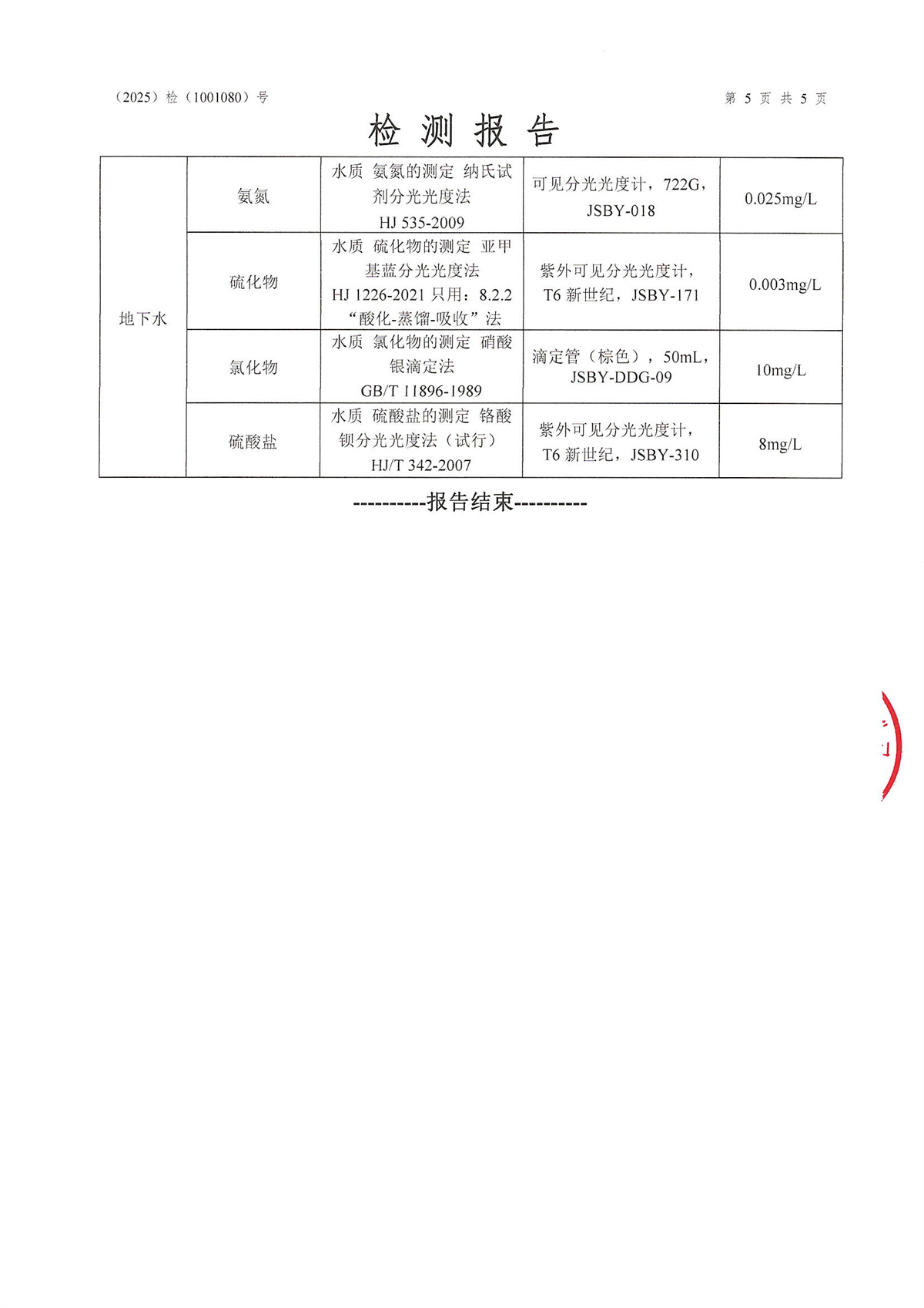 江苏美乐车圈有限公司2025年半年度地下水检测