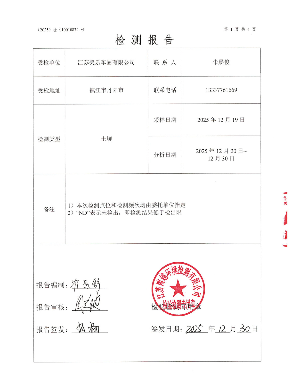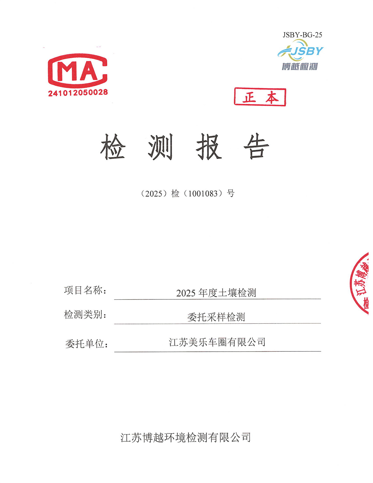 江苏美乐车圈有限公司2025年度土壤检测